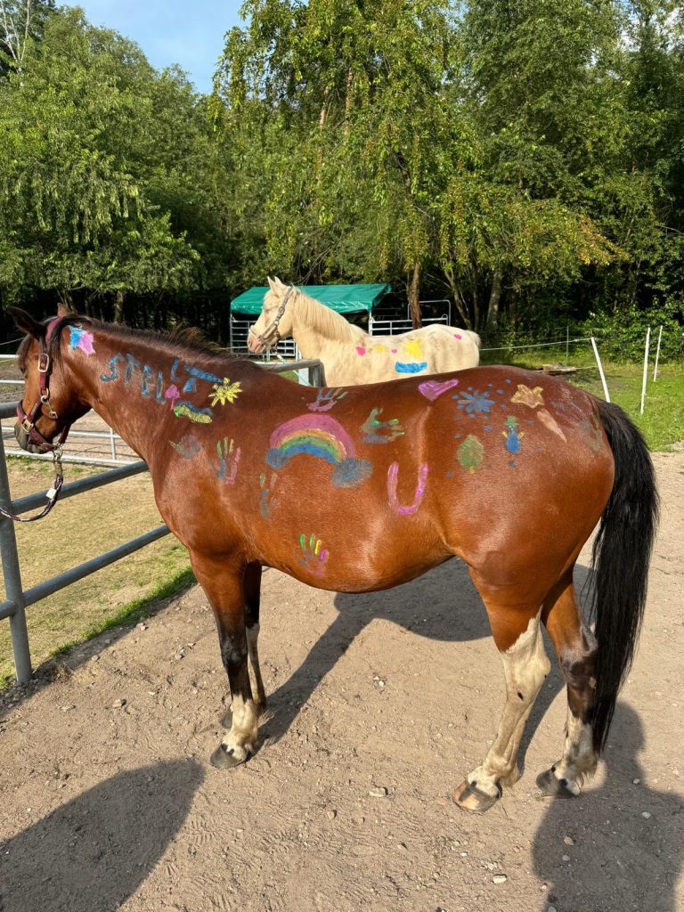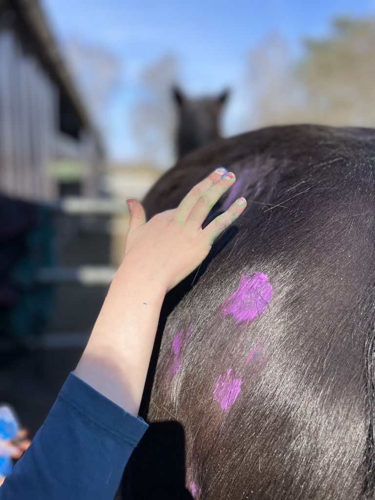 Je nach Zeit und Wunsch passen wir das Programm individuell an. Die Kinder erleben die Ponys hautnah – vom Putzen über das Reiten bis hin zum liebevollen Bemalen.